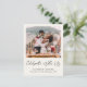 Elegant lätt cremefärgad elopements- och mindre bröllopsanmälningskort samt inbjudan till efterfest eller bröllopsfest. Framsidan visar ert foto, "Fira med oss" i ett elegant skrivstil och era förnamn och bröllopsdatum och plats i en enkel modern typografi. På baksidan kan ni anpassa er bröllops- eller elopementsanmälan mer i detalj, lägga till en inbjudan till efterfest eller fest och underteckna era efternamn som gifta i ett signaturliknande skrivstil.