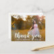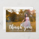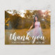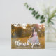 Modern studenten tackar dig för vykortet med "tack" i en vit handskriftsstil i eleganten tillsammans med "för att du firar med mig" i ett sans serif-teckensnitt, över ditt favoritfoto. Baksidan har din returadress tillsammans med ditt personliga meddelande i guld över en vit bakgrund. Du kan ta bort mallen om du vill skicka meddelandet. Det här enkla och söt tack du har för vykort är perfekt för en flicka student.