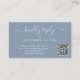 Kort för dammig blå bröllop OSA i eleganten som har ett "vänligt svar" i ett vitt skript i chicen med dekorationer. Ange din bröllop webbplats adress för att skapa en QR-kod som dina gäster kan söka igenom till OSA online. På baksidan finns fotot överlagrad med det första namn och bröllop-datumet gått med med ett hjärta.