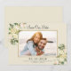 Elegant Spara datum-fotolister design har din förlovningsbild ramad av en chic glänsande gyllene ram. Romantiska, chic botaniska vita vaniljbröllopsrosor visas i lummig grönska och ger en trendig och sofistikerad touch på en äggskalsfärgad bakgrund. Anpassa med din favoritbild. (För bästa placering av din bild, använd ett fotoredigeringsverktyg för att centrera och beskära INNAN du laddar upp till Zazzle-webbplatsen.) . Dela din förlovning och dina bröllopsdetaljer med dina gäster i elegant kolgrå bokstavering och skrivstil. Baksidan av kortet är en enkel matchande äggskalsfärg. Kontakta mig gärna på invitationsuites@gmail.com om du har frågor om denna eller någon av våra