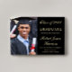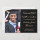 Elegant svart högskoleexamen inbjudan med ett foto av examen, hans eller hennes namn och klassår i en stilfull guldskrift och hans eller hennes universitet, huvudämne och utmärkelser i modern guldtypografi.