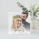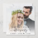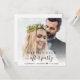 Elegant bröllop eller bröllopsannons och mottagningsinbjudan för att låta familj och vänner veta att du gifte dig i en liten intim vigselceremoni och att du nu vill bjuda in dem till en bröllopsfest. Framsidan visar ert bröllopsfoto och "Happily Ever After Party" i en blandning av enkel typografi och ett trendigt skrivsätt med svängar. Under er bild kan ni lägga till er förnamn och bröllopsdatum. På baksidan kan du anpassa ditt meddelande i detalj och lägga till detaljer om festen eller mottagningen och era namn i ett signaturliknande skrivsätt.