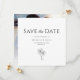 Elegant Destination Wedding Spara datum meddelande-kort med tropiskt träd handflatan och enkel fotodesign. Med anpassadets typografiktext kan du lägga till namn- och bröllop-information. Du kan också lägga till ett eget foto om du vill lägga till en liten bit av anpassning. Underbar för att planera din speciella dag.