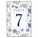 Elegant fransk blå ros akvarell bröllop bordsnummer
