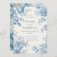 Elegant Fransk toile Blue Blommigt Bröllop Temed-samling för badbröllop på stranden har dammiga blå toile, snyggt script and classy font event information, modern och romantisk, underbar för fransk temat modernt bröllop, botaniskt målbröllop, Vintage boho themed bröllop. Om du behöver någon annan matchande produkt eller anpassning kan du skicka ett vänligt meddelande via Zazzle.
