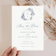 Vapenskölden Ro Fransk Blommigt Vintage för elegant Spara inbjudan till bröllopsbröllop, inbjudan till traditionellt bröllop, Vapenskölden Blommigt Dusty Blue Bröllop Monogram Spara datumkortet