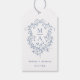 Elegant Fransk Blue Blommigt Vapensköld Bröllop Presentetikett