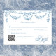 Höj din speciella dag med vår vintage Viktorian-stil bröllop-svarskort QR-kod, ett mästerverk av tidlös elegans. Den här blommigten har en delikat Fransk blå chinoiserie-båge på en pristinvit bakgrund, och den visar prov på klassisk charm och sofistikering. Dess enkelhet framhäver dess förfinade detaljer och skapar en utformning som är lika snygg som din kärlek-historia. Perfekt till dem som vårdar tradition och elegans. Skapat av Farmhouse Press.