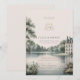 En elegant fransk château-monogram bröllopsinbjudan inspirerad av tidlös europeisk romantik. Med en delikat toile-landskap med utsikt över en lugn sjö och raffinerad typografi, erbjuder denna design en perfekt balans mellan klassisk lyx och romantisk charm.