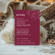 Kortet Cranberry Modern Blommigt Bröllop djurutrymme för detaljer. Den här inbjudan har en elegant stil med kranbärsbakgrund och känsliga vita blommor som känner sig sofistikerade och tidlösa. Perfekt för ett modernt eller traditionellt bröllop.