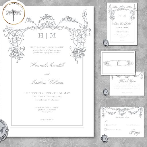 Elegant Fransk Grått Victorian Chinoiserie Bröllop OSA Kort