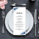Den Elegant Fransk Vintage Blue Blommigt Bröllop Menu tillför en något sofistikerad och charm till ditt bröllopsmottagande med dess delikata blå blommigtar och vintage för tidlös Fransk. Perfekt för par att tittar att skapa en romantisk, vintage- eller trädgårdskrävande bröllop, visar den här menyn på ett vackert sätt måltidserbjudandena samtidigt som den övergripande ambitionen för firande förbättras. Den mjuka paletten färg och den tunna blommigten ger en förfinad känsla och elegant, skapar den en perfekt som passar för en oförglömlig matupplevelse. Med den här bröllop-menyn kan du, helt och hållet anpassade på Zazzle, dina kulinariska val med gästerna på ett snyggt som kompletterar ditt bröllop-tema och ger en personlig beröring till ditt evenemang.