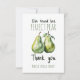 Skaka om festen med detta Päronfrukt-tema Bröllopsfest Tacksamt Kort! 🍸✨ Med ett akvarellpar päron är denna design den perfekta blandningen av elegans och kul. Den mjuka akvarellkonsten och den stiliga typografin skapar en modern, elegant bröllopsfestdesign, perfekt för den blivande bruden som älskar ett klassiskt men lekfullt tema.