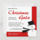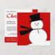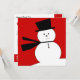 Lycklig och litet rakish snögubbe som ha på sig en svart top hat och en svart scarf som blåser i vinden. Inbjudan för ett julparty. Anpassadebakgrundsfärg.