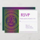 RSVP-kort med elegant vacker Ganesh på en dekorativ lila bakgrund perfekt för det indiska traditionella bröllopet . Låt din speciella tillställning vara oförglömlig för alla med början på inbjudningar. Även tillgängliga bröllopsinbjudningar, klistermärken och frimärken med detta tema i vår butik.