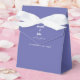 Den eleganta designen för bröllopsfesten och present till gästerna har brudens och brudgummens förnamn och bröllopsdatum i elegant vitt på en trendig periwinkleblå bakgrund på framsidan ovanpå den dekorativa fliken. Två ömtåliga dekorativa krullor som var och en innehåller ett hjärta omsluter varsamt det nygifta parets namn. Anpassa vår lättanvända mall med dina egna bröllopsdetaljer! Framsidan av påsen under fliken har också ett koordinerande tackmeddelande till dina gäster som kan behållas som det är eller anpassas med den lättanvända mallen. Perfekt för att lägga till den speciella känslan på din speciella fest, bröllop, årsdag eller förlovningsfirande! Se till att kolla samlingslänken på denna sida för att se alla matchande artiklar för denna design! Vänligen skicka