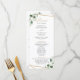 Det här anpassadet Ceremonisprogrammet är designat att samordna med vår Moody Grey bröllop-samling och har en grönt eucalyptus-vattenfärgblad som accentueras med ett guld-geometriskt ram på baksidan, parat med guld och grått-text. Om du vill göra avancerade ändringar går du till alternativet "Klicka för att anpassa ytterligare" under Anpassa den här mallen.