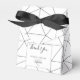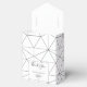 Den här designen har en elegant svart och vitt geometriskt mönster. Den geometriska bakgrunden mönster skapar bakgrunden till perfekten för bröllop. Kombinationen av svart och vitt färg skapar ett sofistikerat, trendig och chic stil. Utformning av en förmånslåda i elegant bröllop med modernt inslag. Den moderna uppställningen av typografin ge är ett tydligt stil. Det finns också möjlighet att matcha bröllopsinbjudningar och andra artiklar i kontorsartiklar.