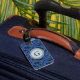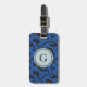 Elegant, giftigt blått blommönster, monogram bagagebricka