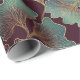 Sophisticated seamless ginkgo leaf pattern wrapping paper featuring fine gold-style linework in teal and muted blush over a deep burgundy background. A refined botanical design with an art deco influence, ideal for lovers of elegant decor, nature-inspired aesthetics, and timeless luxury gifts.