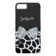 En chic svart och vit giraffe Knappt Det iPhone 6 Fodral med en elegant silver-färgband som är bundet till en feminin båge. Anpassa den här mobila enheten för giftig utskrift av djur fodral genom att lägga till ditt namn. Platt utskriven bild, inte verklig båge.