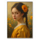 A graceful and timeless digital portrait capturing the soft beauty of a young woman surrounded by golden flowers. The warm tones of yellow and light evoke feelings of peace, nature, and gentle sunlight — perfect for elegant home decor, bedrooms, or art galleries.