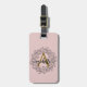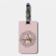 Elegant Girly Rosa FloralGold Monogram Namn Bagagebricka