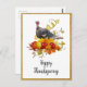 Skicka detta elegant utformade Thanksgiving-kort till dina vänner, familj eller kunder. Detta vykort har en klassisk kalkon, pumpa och guldblad/guldglitter-kantdesign. Anpassa hälsningen med dina egna ord. Detta vykort har en hälsning på baksidan. Denna collage-design skapades med hjälp av diverse utklippta illustrationer från Pixabay.com