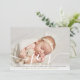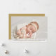 En elegant semester fotobarn annonseringskort med ditt speciella favoritfoto, barnets namn och födelsedatum, och ditt semestermeddelande i klassisk modern typografi över ett chic manus meddelande om glädje. Designad av Thisisnotme©