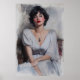 Den här fängslande vattenfärgen porträtt utstrålar en luft av sofistikerad allure och självsäker glamor. En vacker, ung kvinna med slående mörk hår avbildas på sittande, och hennes ögon glanserar häftigt till hennes lämnat. Hon bär en lätt grått-klänning i eleganten med en djup, lugnande nekline, perfekt kompletterad med ett fet ljust, ljust läppstift som accentuerar hennes sulfatuttryck. Teknologin med vätskefärgning förbättrar scenens mjukhet, ljudets nyans och hennes fängslande närvaro. Biet är ett firande av självsäker femininitet, tidlös glamor och underskattat drama.