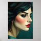 This illustration depicts timeless elegance; capturing the magnetic beauty of a poised woman in profile. It blends vintage glamour and modern artistry and is perfect addition to any room especially for fashion forward decor lovers.
