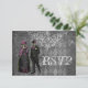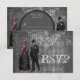 Coola, elegant och Halloween fest formella OSA-platta inbjudningar med ett fantastiskt Gothic horror-skelett-par. Dam är klädd i en vacker vintage svart, rosa och grönt med blommor och fjärilprydnadsämnen. Mannen är snyggt i top hat, svan och käpp. Bakgrunden är en elegant vintage svart, grått och vit shabby chic med ornerade vita dekorationer för rulla, en dragonfly, antika fet skrift och snyggt harlequin mönster. På baksidan av den här funkyn är goth inbjudan en glamorös tryckt svart pärlor och snöre mat med text som du kan anpassa med din händelseinformation. Klassi, trendig roligt inbjudan. Jag har matchande produkter i min butik. All text kan enkelt anpassas efter dina behov och du kan ändra teckensnittet stil, färg och storlekt om du vill. Om du behöver hjälp med att anpassa din produkt kontaktar du mig genom min butik och jag kommer att vara lycklig för att hjälpa till. ©Hazel Kinvig-Paul www.design-a-dream.co.uk Observera att all inbjudan på Zazzle har platt tryckt bilder.