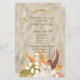 Vacker vit akvarell Pampas Gräs med en fjäder inklämd i en förgylld utsmyckad ram. En bakgrund med högglansfinish framhäver inbjudan.