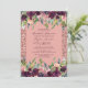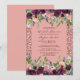 Elegant och stilren glitter bröllopsinbjudan med burgunder och rosafärgade blommor och gnistrande rosa glitter.