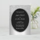 Elegant Silver Glitter Foil Allt i en bröllopsinbjudan... På grund av den metalliska folie som finns i silver har vår bröllopsinbjudan "All in One" i elegant ett unikt överlägg för silver glitter med er inbjudningstext i en svart oval ram med en silver-folie gräns. Kortets baksida innehåller alla detaljer som du normalt skulle se på separata kort eller biet på pappra i bröllop-paketet. Den här moderna bröllopsinbjudan från stil var designad för att vara både elegant- och budgetmedveten.. för att inte nämna tidsbesparing. På baksidan finns det också en QR-kodgrafikmall som du kan ersätta med din egen kod (eller ta bort om du inte tänker använda använda ett). All exempeltext kan enkelt revideras med egen information om anpassningsmallen.