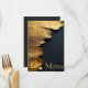 Detta fantastiska meny kort har en lyxig guld folie struktur i kombination med en snygg svart bakgrund och elegant guld typografi. Perfekt för bröllop, banketter eller formella middagar, denna design kompletterar moderna och lyxiga teman perfekt. Presentera din events meny med denna stilrena och sofistikerade brevpapper del.