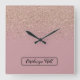Elegant Glitter Monogram Namn | Fyrkantig Klocka