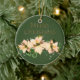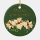 Dekorera Julgran med denna vackra vita poinsettia-prydnad eller ge som en gåva till den speciella personen. Den här prydnaden har hälsning "God jul" i ett upphöjt guld-teckensnitt och festliga poinsettias. Det finns ett hälsning på baksidan som du kan anpassa med ditt eget ord eller köpa som det visas.