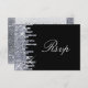 Fast svart bakgrund med en bländande glamorös rinestonutsikt längs den lämnat sidan. En grafisk återgivning av juveler och sparkler som leker med ljuset gör att ett svarskort för OSA av perfekt blir en del av ett matchande bröllop-set för vinter eller valfri säsong. Design Copyright © CustomInvitesOnline.com