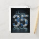 Denna lyxiga 35-års födelsedagspostkort har en massiv '35' helt täckt med glänsande simulerade diamanter och djupa safirblå ädelstenar. Juvelerna är satta i en polerad silverkromstruktur, vilket skapar en otrolig 3D-effekt. Den mörka kolgrå bakgrunden har ett elegant, bokehbelyst sken. "Happy Birthday" är skrivet ovanför och nedanför i ett flödande, ljusblått typsnitt. Det är en premium, anpassningsbar, juvel-tonad hyllning för en stor milstolpe.