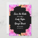 Denna inbjudan till bröllop spara datum i elegant är perfekt för en modern sommar-bröllop. Den romantiska designen har vackra, ljusa orkidéblommor med vit kalligrafi av elegant på svart bakgrund.