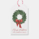 Lägg till festiv charm i dina helgdag med de här märkrna med elegant fotogåvor som innehåller en handmålad vattenfärgad krans av lush greenery som accentueras av subtle ljus och avslutas med en traditionell röd båge. "God jul" visas i ett snyggt skript, och din familj namn visas nedan med klassiskt serif-tecken för personlig touch. Perfekt för Julklapp, helgdag-tjänster och säsong-presentemballering.