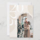 Elegant och modern nyårskort med en varm familjemoment. Kortet har en neutral, minimalistisk bakgrund i mjuka beige toner, med året '2027' subtilt visat i stora, överlappande siffror. Hälsningen 'GOD JUL' välver sig graciöst runt toppen av en utskuren bild. Lägg till din bild och ditt meddelande .