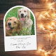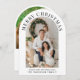 Modern arch-formad helgdag-kort med foto och "God jul" i elegant serif-typografi. Anpassa ditt namn och säsong hälsning i enkel typografi. På baksidan lägger du till ett andra foto, ett personlig-meddelande och namnen i ett namnteckning skript.