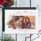 Elegantens kalligrafiskript God jul hälsning (färg är anpassade) med färgspray av julpoinsettias, holly och gräs.