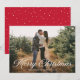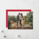 Modern helgdag-fotokort med vågräts foto med "God jul" som visas i ett fet, vitt calligraphy-skript-överlägg. Anpassa framsidan av julfotokortet med din familj namn och året. Kortet återgår till visning ett rött och vitt snö mönster.