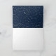 Ett elegant och enkelt julkort med glada högtider med guldstjärnor och ett guld kalligrafiskrift dekorerat med hjärtan på en sofistikerad bakgrund av djupblått. Baksidan av kortet har en strödd guldstjärnor på en djupblå bakgrund. Tryck på knappen för personlig anpassning för att lägga till ditt familjenamn eller enskilda namn och sprid glädje under högtiden.