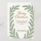 En elegant och en minimalistisk helgdag med en ren vit bakgrund med känslig grönt gräs grenar som ramar in kant. Ett stort, underbart genomskinligt konst guld ansikte i Jultomten går i centrum, kompletterat med uttrycket "God jul" i glansigt metallskript i guld överst. Den här utformningen ger gott om tomt utrymme för personlig och förkroppsligar ett klassligt vintertema med feg värme.