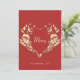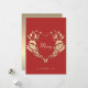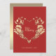 Modern, elegant, enkelt, vackert gratulationskort med rött God jul, med rustik hjärtformad andedräkt i guld.
