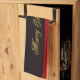 Vackra julhanddukar med gyllene God jul-text med grönt högdagrar på svart bakgrund. Ett faux rött band med guldfärgat klockor och ett rött båge springa över designen. Mycket elegant juldesign för dina helgdag.